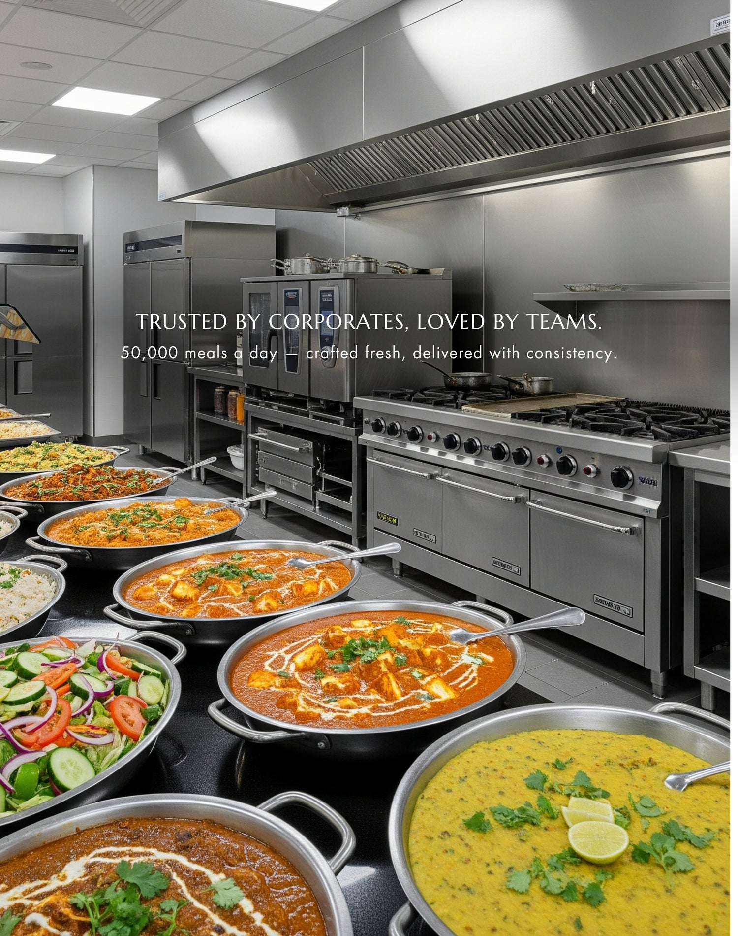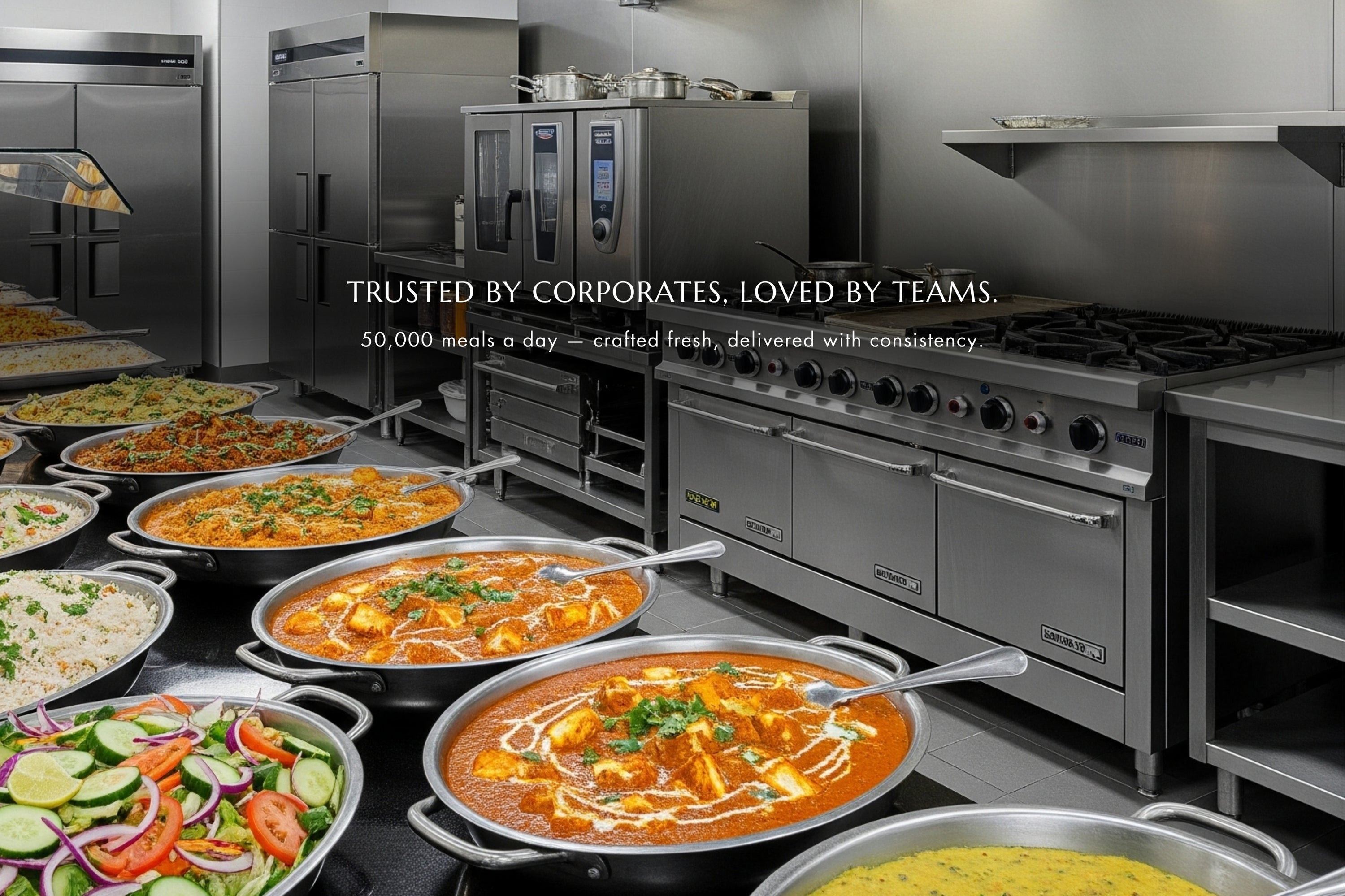 We are an ISO:22000:2018 certified company, operating from a 15,000 sq. ft. state-of-the-art base kitchen in Gurgaon, equipped to serve with safety, consistency, and uncompromised hygiene — at scale.